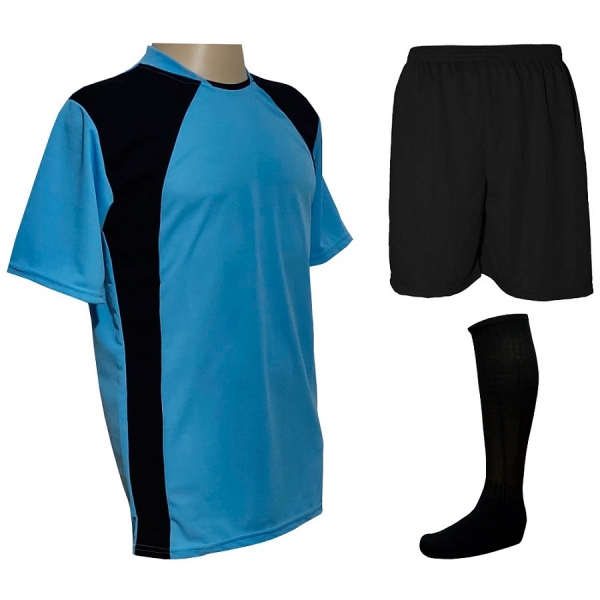 Informações do produto: Jogo de Uniforme Completo TRB 20+2 Celeste/Preto - Azul Claro/Preto