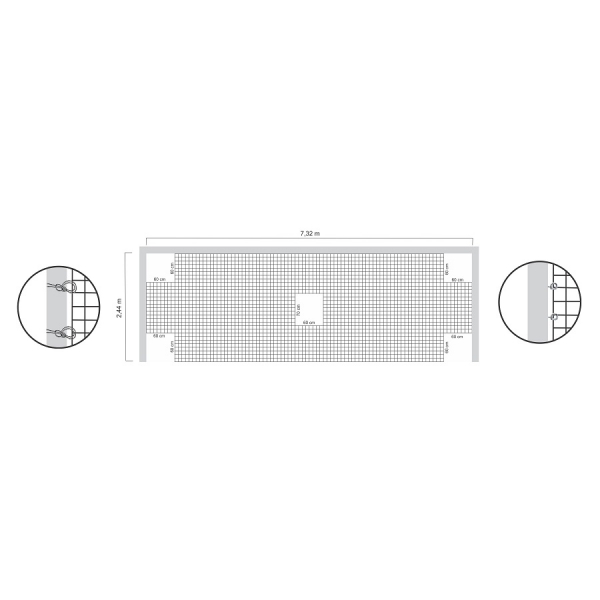 As Malhas das redes são confeccionadas com nós cerrados, o que proporciona na prática mais resistência às redes, evitando que as malhas aumentam seus tamanhos originais, oferecendo maior poder de retenção. Informações Técnicas: Material: 100% Polipropileno.Fio: 2,5mm seda. Medidas: 2,44 x 7,32m.Malha: 4x4.Contém 1 peça.*Garantia do fornecedor contra defeitos de fabricação.
